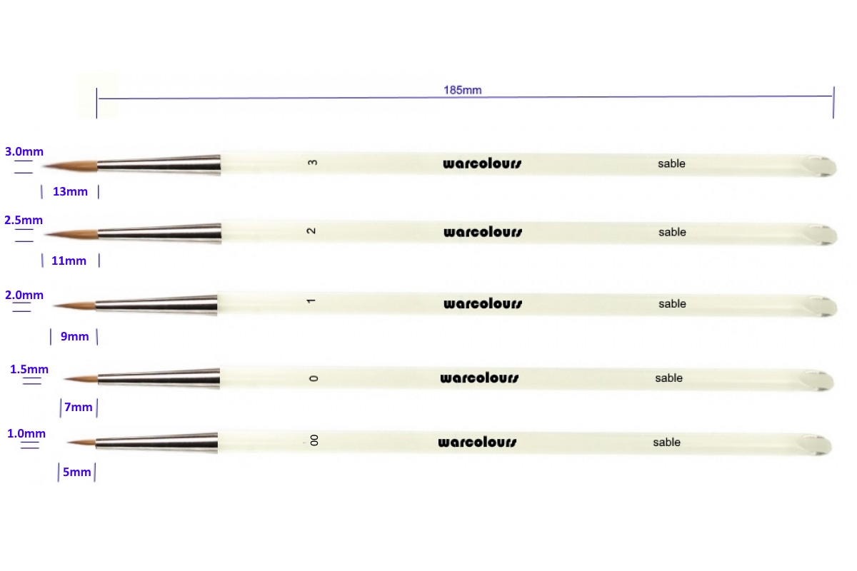 The set consists of 5 brushes: size 00, size 0, size 1, size 2 and size 3