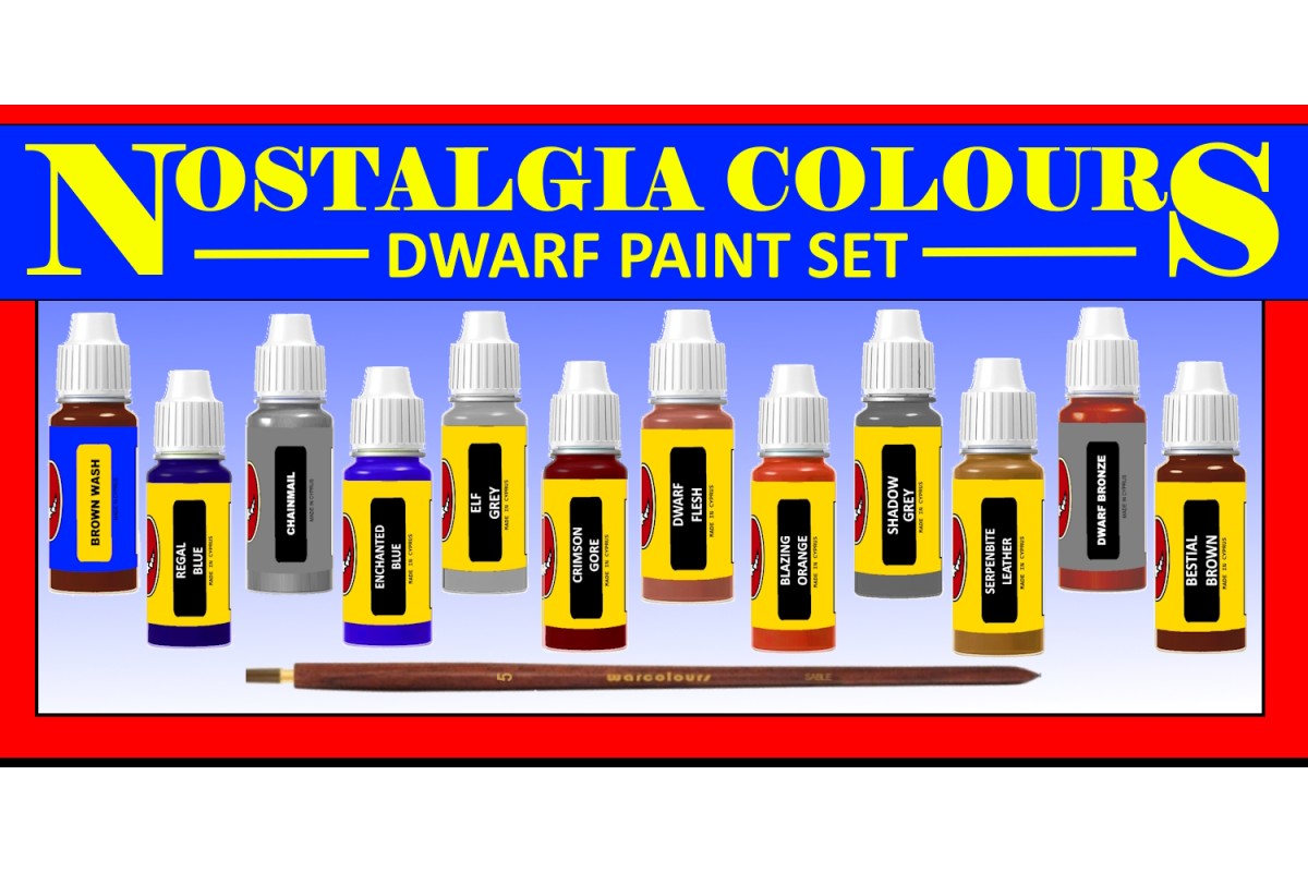 The 1994 classic 'Nostalgia Dwarfs Paint Set' with twelve bottles of paints and a kolinsky sable brush!