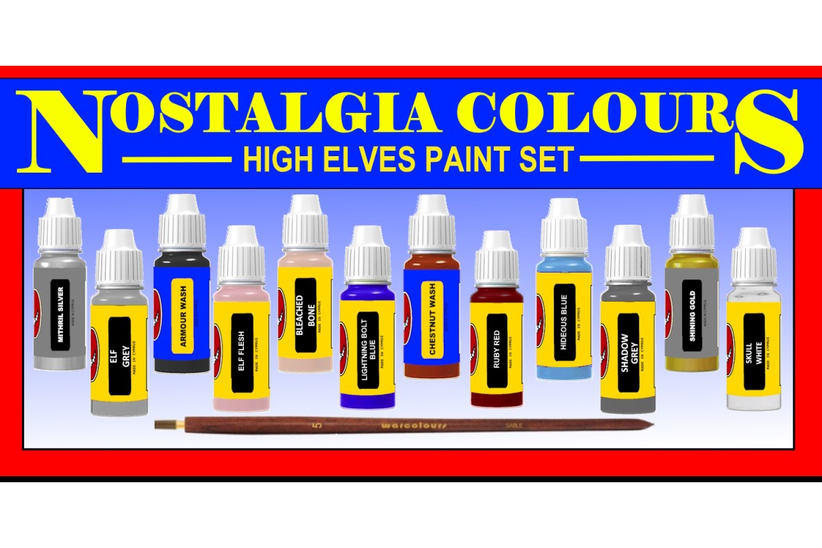 The 1994 classic 'Nostalgia High Elves Paint Set' with twelve bottles of paints and a kolinsky sable brush!
