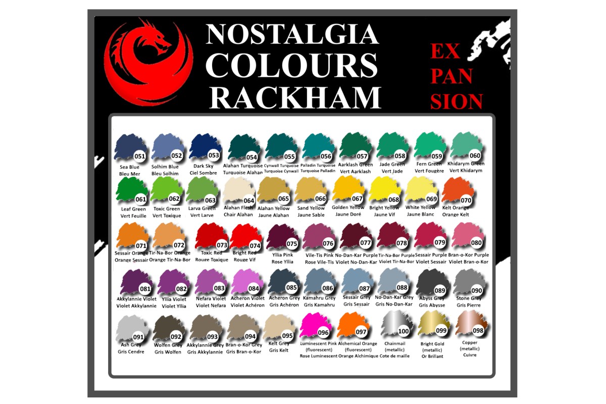 20 years ago, Rackham Entertainment (Confrontation) released their own range of paints, named Rackham Colors. The range was created with their unique miniatures in mind, and miniature artists sought solace in the warm embrace of Rackham's unique hues. With 'Nostalgia Colours Rackham', we bring back those cherished shades that inspired generations of artists. Delve into a palette that resonates with history, emotion, and innovation.